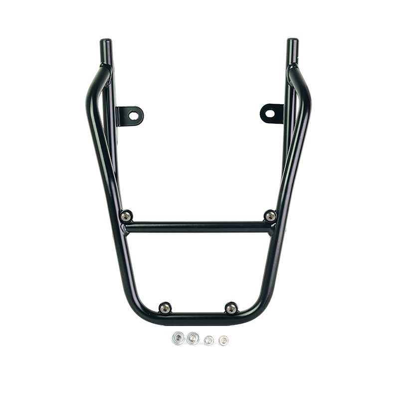 BMW CE 02にハードトップケースや大量の荷物を取り付けたい場合は、このラックが最適です。後部部分を完成させ、乗客用の快適なハンドルを装備しています。頑丈で実用的。4 つの事前配置された固定具を使用して、アルミニウム トップ ケースのコード プレート: U108 とコード プレート: AL3 の両方を収容できます。マットブラックの高耐性エポキシパウダー仕上げもご用意しています。