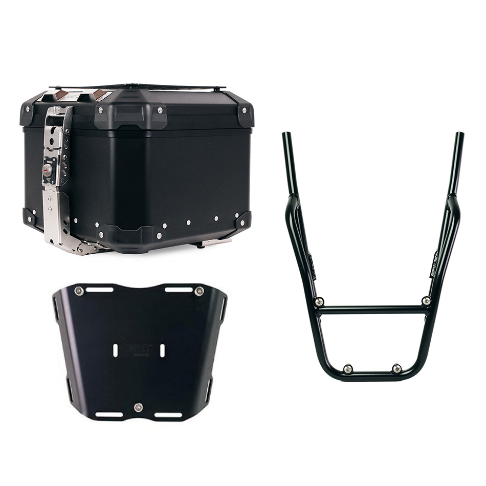Honda GB350Sにハードトップケースを取り付けたい、あるいは大量の荷物を積みたいなら、このラックが最適です!リアセクションに美しく調和し、便利なパッセンジャーハンドルを備えています。頑丈で実用的。4つの固定具を装着することで、アルミトップケース用のU108プレートとAL3プレートの両方を取り付けることができます。高耐久性のマットブラックエポキシパウダー仕上げもご用意しています。