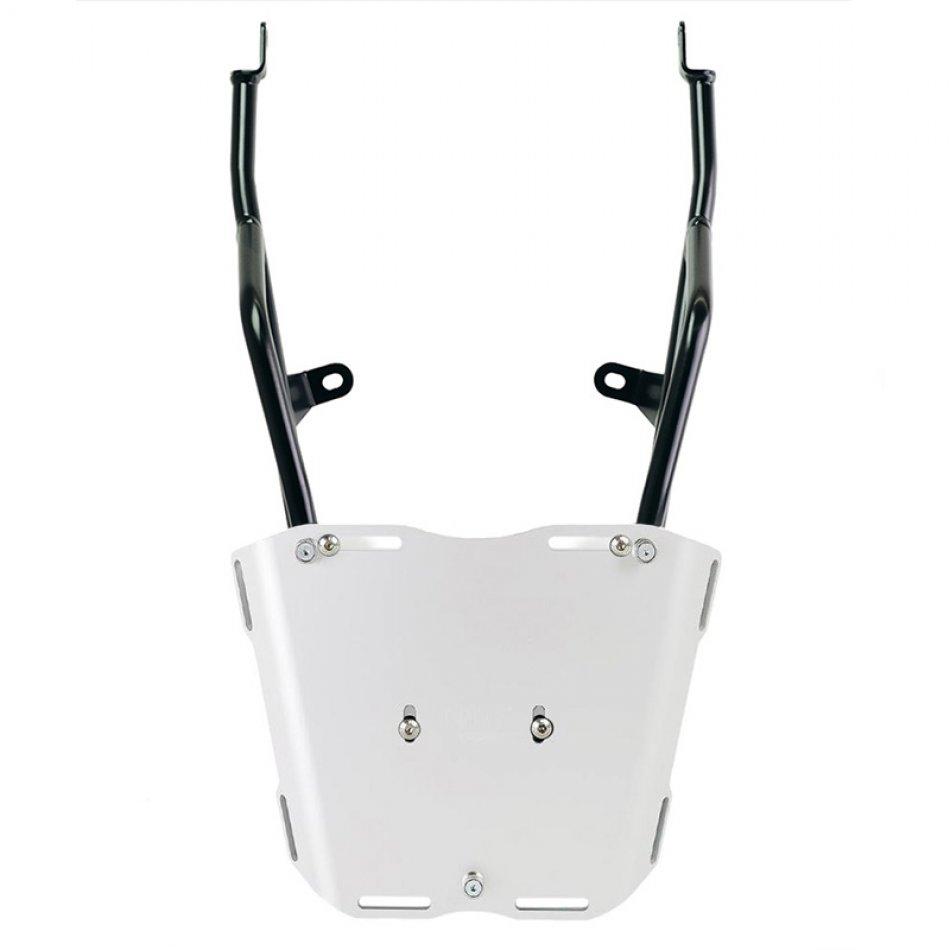 ロイヤルエンフィールド ベア650にハードトップケースや大きな荷物を積んで旅に出たいなら、このラックが最適です!リアセクションを完璧に仕上げ、快適なパッセンジャーハンドルを備えています。頑丈で実用的。4つの固定具を装着することで、アルミトップケース用のU108プレートとAL5プレートの両方を取り付けることができます。高耐久性のマットブラックエポキシパウダー仕上げもご用意しています。ソフトバッグを積載して荷物スペースを広く確保するのにも最適です。