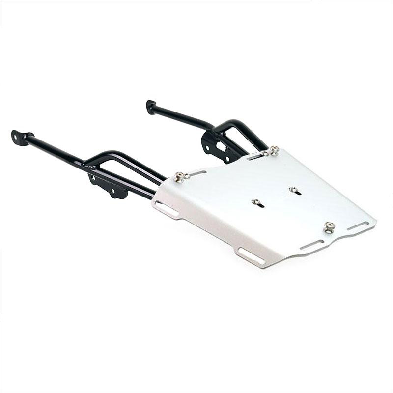 マットブラックエポキシパウダー仕上げのスチールパイプ製ラゲッジラック。リアセクションを補完し、パッセンジャー用ハンドルを装備。オリジナルのバイクに簡単に取り付けられます。頑丈で実用的。支持面にはAL5プレート(別売、またはAtlasトランクコード:ATL3に付属)を固定するためのブッシュが4つ装備されています。