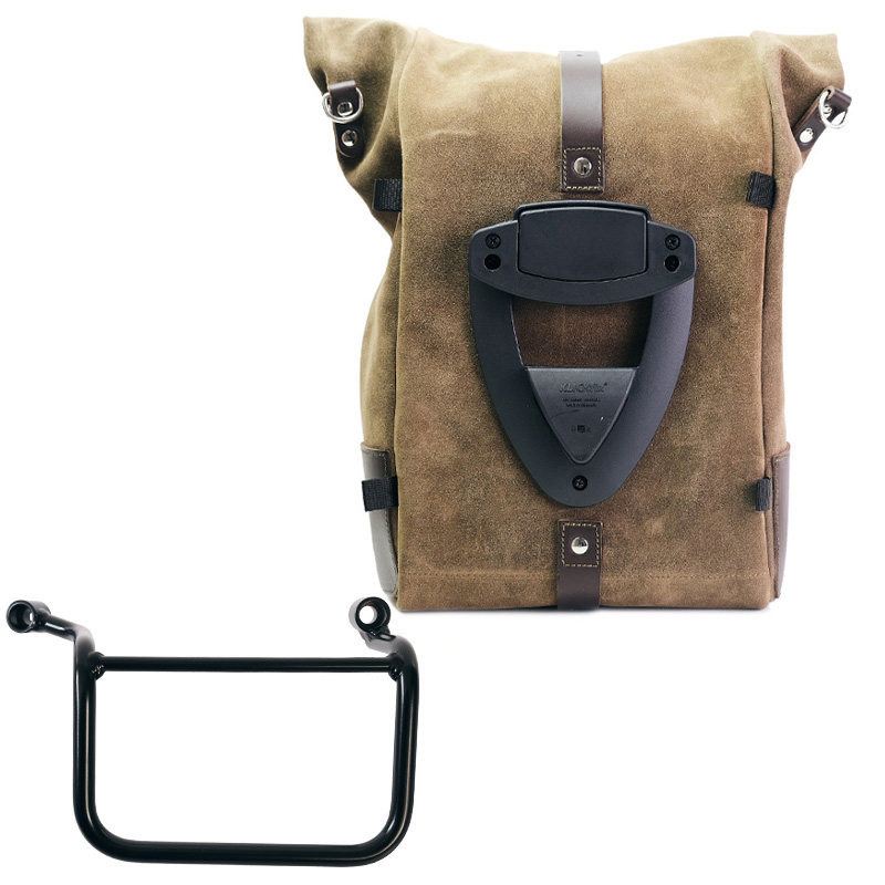 細部にまでこだわって作られ、3mm厚のレザーで仕上げられたこのバッグは、素材そのもののシンプルさと純粋さを体現しています。バッグ背面に装備されたクイックリリースシステムでバッグフレームに簡単に取り付けられ、フレーム自体に固定するためのロックも付いています。