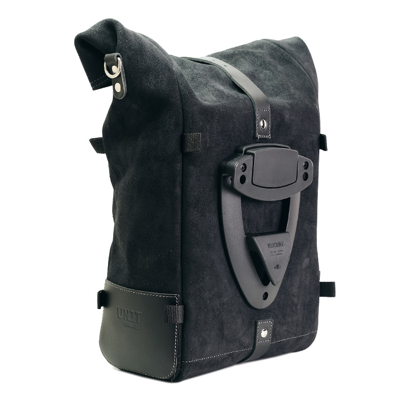 細部にまでこだわって作られ、3mm厚のレザーで仕上げられたこのバッグは、素材そのもののシンプルさと純粋さを体現しています。バッグ背面に装備されたクイックリリースシステムでバッグフレームに簡単に取り付けられ、フレーム自体に固定するためのロックも付いています。