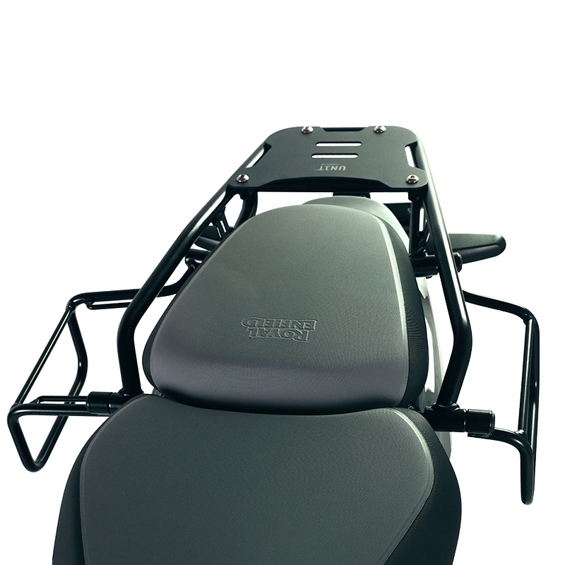 ロイヤル エンフィールド フレームに基づいて設計されており、オートバイの他の部分と完全に統合されており、マットブラックのエポキシパウダー仕上げを施した処理スチール製です