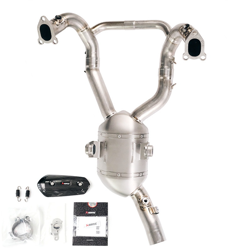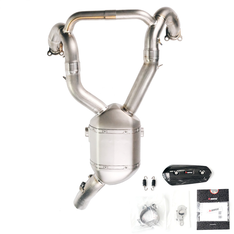 カーボンファイバー保護を備えた高品質のチタンで作られた Akrapovic マニホールド。