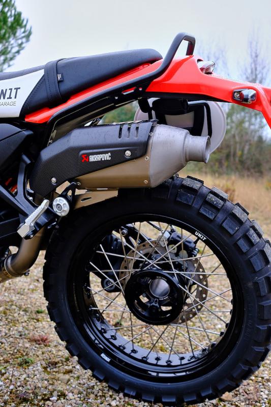 Unit GarageとAkrapovicのパートナーシップにより、Akrapovicの技術、Unit Garageのデザイン、そして1980年代のBMW Dakarモーターサイクルにインスパイアされた美学を融合させたエキゾーストシステムが誕生しました。高品質チタン合金とカーボンカバーでハンドメイドされたこのマフラーは、わずか2.1kgの軽量設計です。軽量化に加え、パワーとトルクが向上し、より深くスポーティなサウンドを奏でます。バイクの純正マウントブラケットと互換性があるため、改造やECUの再マッピングを必要とせず、簡単に取り付けることができます。