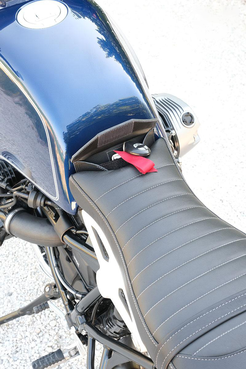 オブジェクト収納ポケットは、9Tモデル用のタンクと、オリジナルのタンクに取り付けられているすべてのサドルの間にぴったり合うように作られています。