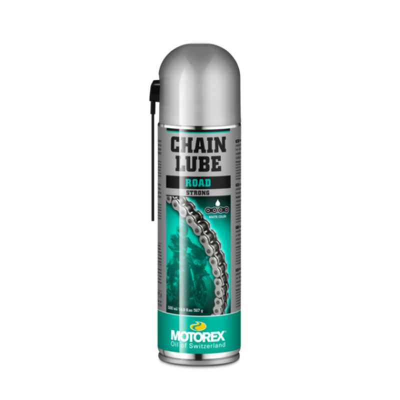 Motorex Chainlube Road 強力で長持ちするホワイトチェーン潤滑剤。Oリング、Xリング、Zリングを備えたロードバイクのチェーンに特化しています。優れた密着性と防水性を備え、チェーンの寿命を延ばします。