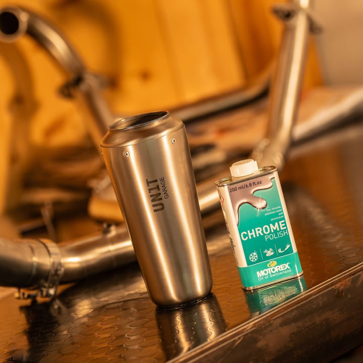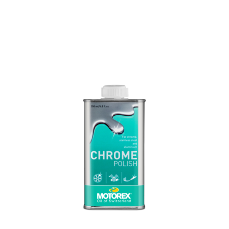 Motorex Chrome Polishは、クロム、スチール、アルミニウムの表面に鏡のような輝きを与えます。本製品は表面を洗浄、研磨し、保護します。例えば、バイクの排気システムで焦げたゴムの汚れを落とすことができます。洗浄された表面には、目に見えないほど薄く光沢のある保護膜が形成され、腐食を防ぎます。