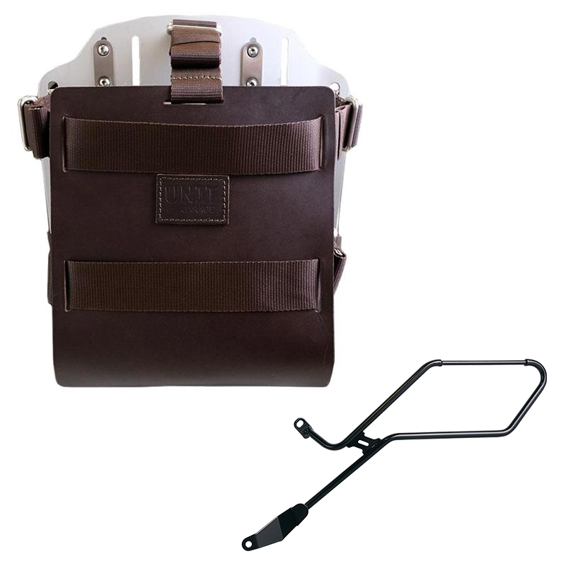 ため、バッグホルダーフレームにすばやく取り付けられます。プレートは、バイクの側面に平らな取り付け面を作成します。これにより、接続されていないバッグや、寝袋、ジャケットなどの他の物体を輸送できます。フロントフラップは、3 mmの革仕上げの細部に注意を払い、付属のスライダーを使用して調整でき、プレートから非常にすばやく取り外すことができます。