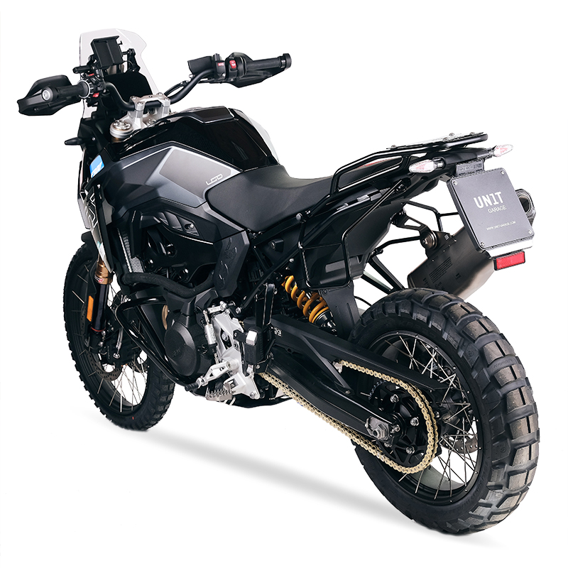 BMW F900GS フレームに基づいて設計されており、バイクの他の部分と完璧に統合されます。当社のクイック アタッチメント システムに対応しており、バッグを取り付けていないときでも美しくミニマルなデザインです。同乗者を乗せた状態でも快適に使用でき、弊社の荷物ラックにも対応しております。