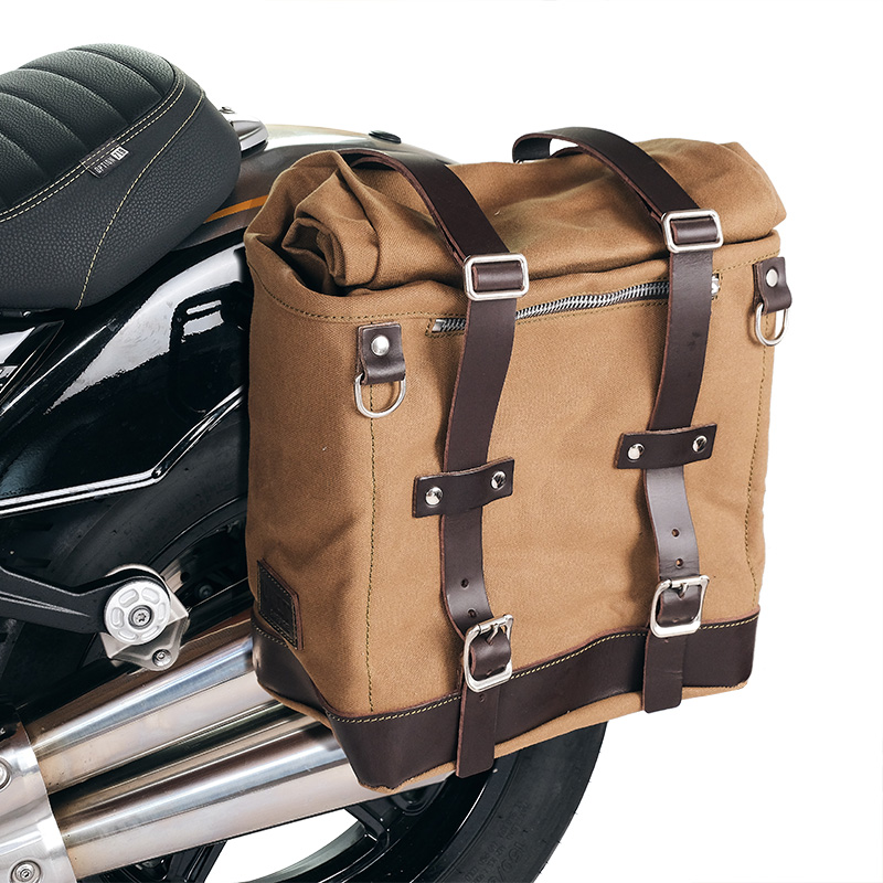 22 リットルから 30 リットルまで拡張可能なスクラム サイドバッグ。丈夫な最高品質の防水コットンを使用し、イタリアで手作りされています。