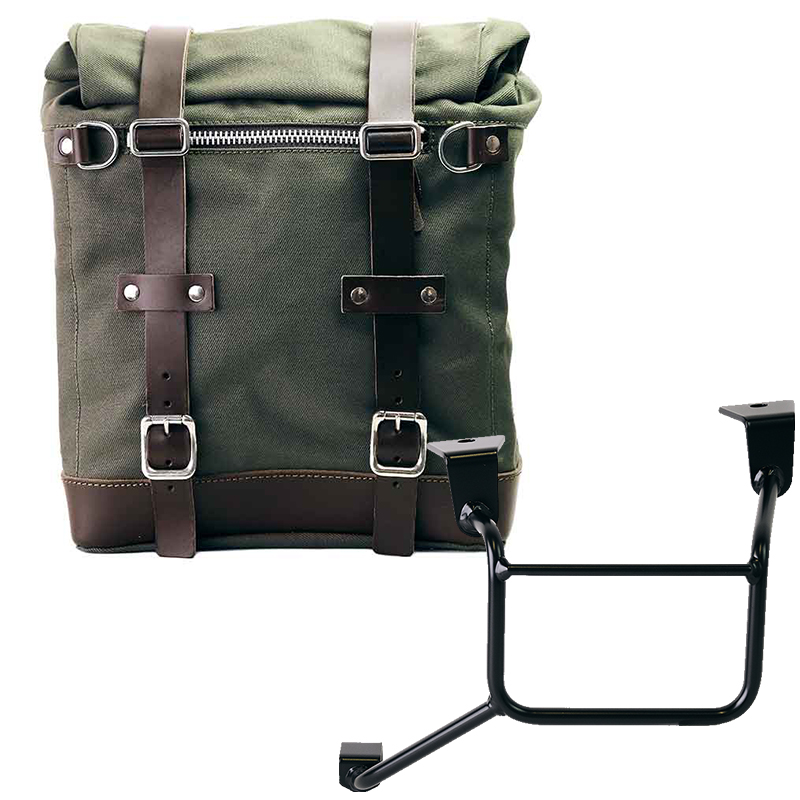 最高品質の丈夫な防水綿でイタリアで手作りされた22から30リットルまで拡張可能なスクラムサイドバッグ。