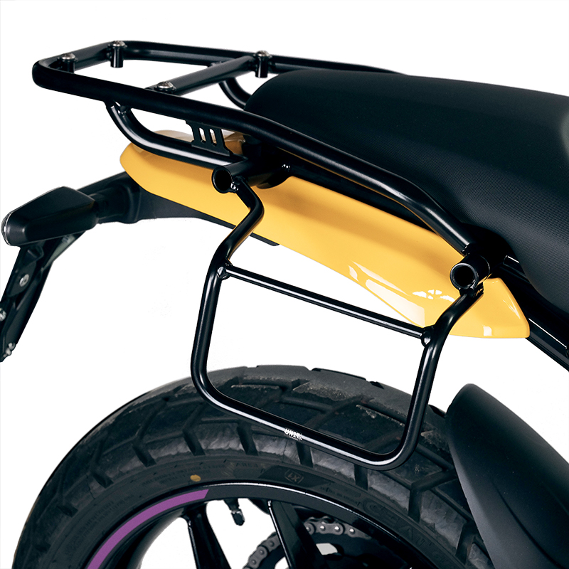 後部部分を完成させ、乗客のための快適なハンドルを装備しています。頑丈で実用的。4 つの事前配置された固定具を使用して、アルミニウム トップ ケースのコード プレート: U108 とコード プレート: AL3 の両方を収容できます。プレートを取り付けることでソフトバッグ用の積載スペースを増やすのにも最適です。コード: AL13 このバージョンでは、マットブラックの高耐性エポキシパウダー仕上げで提供されます。