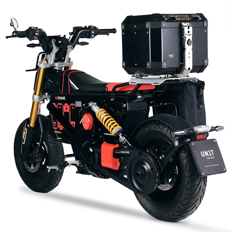 後部も完成し、乗客にとって快適なハンドルが装備されています。丈夫で実用的で、アルミニウム製のトップケースを収納できます。シルバー仕上げまたは高耐久のマットブラックパウダーペイントで処理されたものが利用可能です。