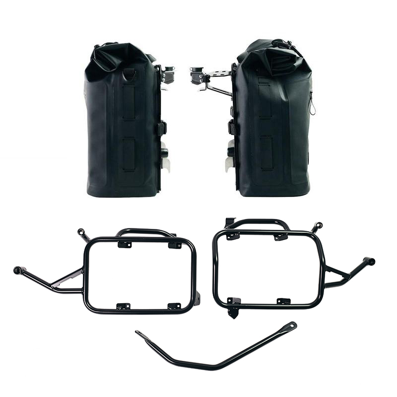 アルミ製バックプレートとステンレススチール製のクイックリリースとロックを備えた100%防水Khaliサイドバッグのペア