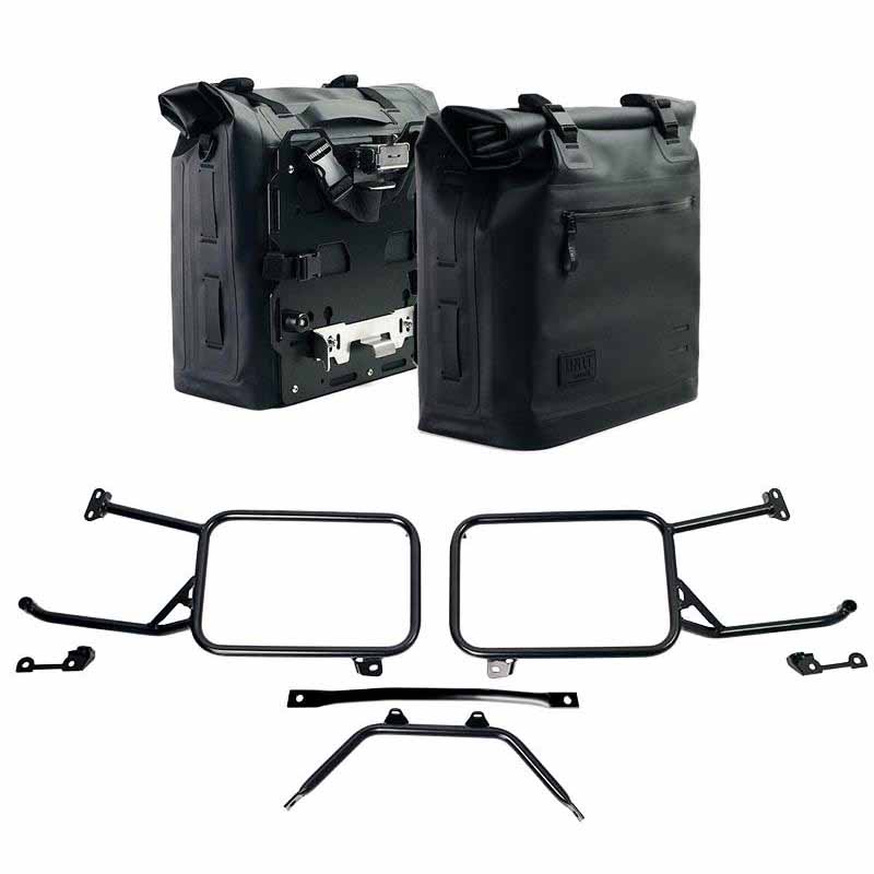 アルミ製バックプレートとステンレススチール製のクイックリリースとロックを備えた100%防水Khaliサイドバッグのペア