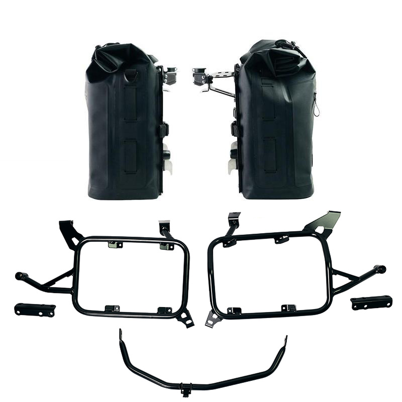 アルミ製バックプレートとステンレススチール製のクイックリリースとロックを備えた100%防水Khaliサイドバッグのペア