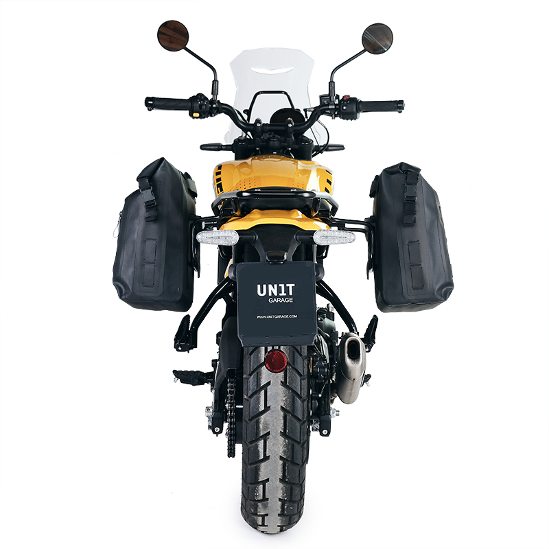 ロイヤルエンフィールドシャーシをベースに設計。バイクの他の部分と完全に統合されます。バッグが取り付けられていないときでも、美しくミニマルなクイックアタッチメントシステムに対応する準備ができています。同乗者が快適に使用でき、当社のルーフラックと互換性があります。