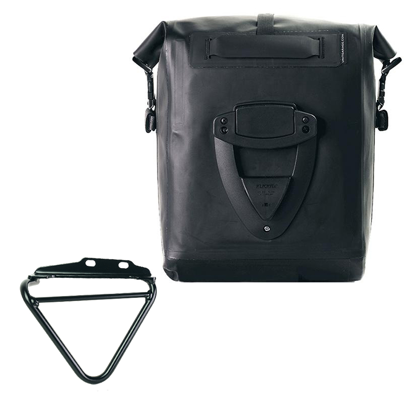 付属のクイックリリースシステム(Cod.U000)でバッグフレームに素早く取り付けられます。バッグ背面にはロックが付いており、フレームに固定できます。15インチのノートパソコンを収納でき、広々とした防水ポケットも備えています。