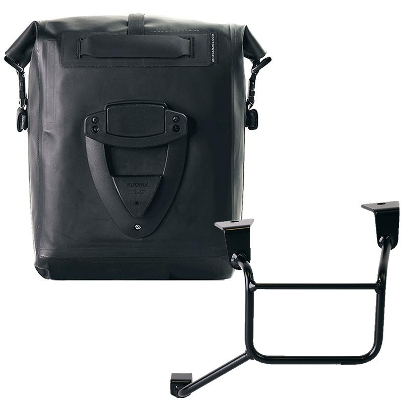 クイックリリースシステムCod.U000がすでに含まれており、フレーム自体をロックするためのロックが装備されているバッグの背面に取り付けられているため、バッグホルダーフレームにすばやく取り付けられます。 15インチのラップトップを収納でき、大きな防水ポケットが付いています。