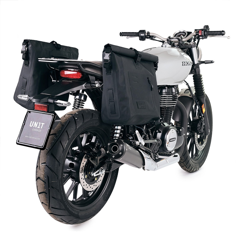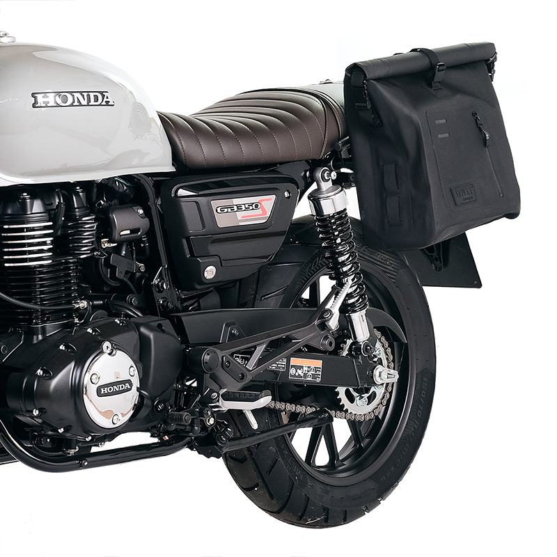 Honda GB350S フレームに基づいて設計されており、バイクの他の部分と完璧に統合されています。当社のクイック アタッチメント システムに対応しており、バッグを取り付けていないときでも美しくミニマルなデザインです。同乗者がいても快適にご利用いただけます。