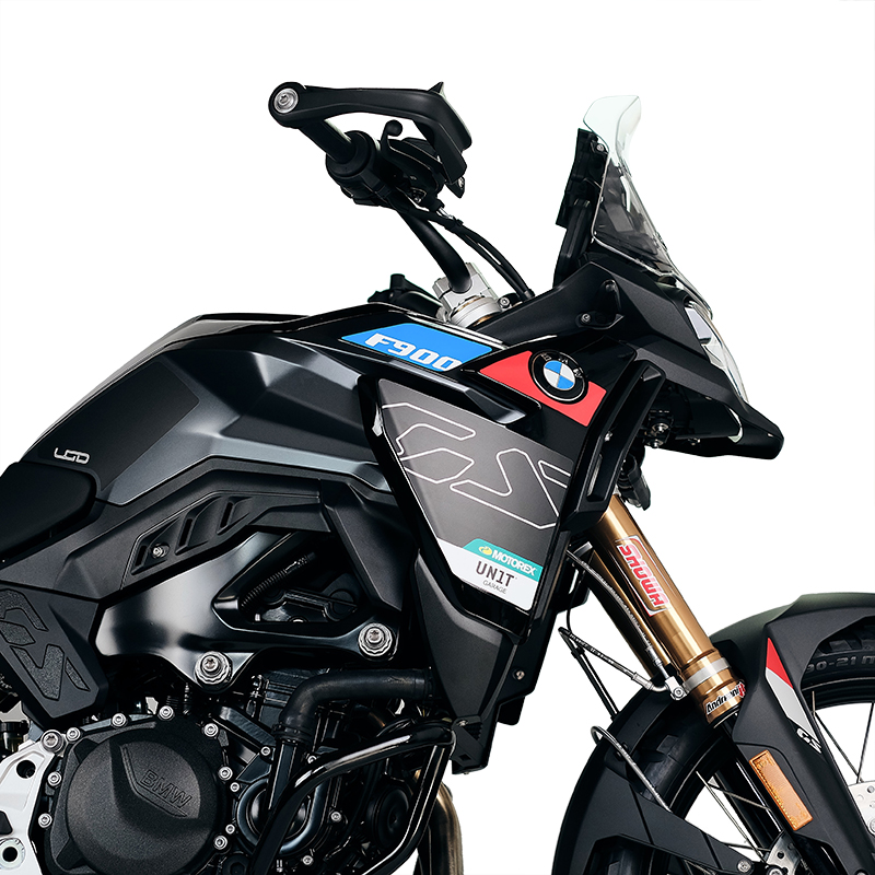ブラック バージョンのオリジナル フェアリング用に作成されたこの製品は、クラシックな BMW カラーを反映しており、標準のステッカーを取り外してオリジナルのプラスチックに直接貼り付けることができます。