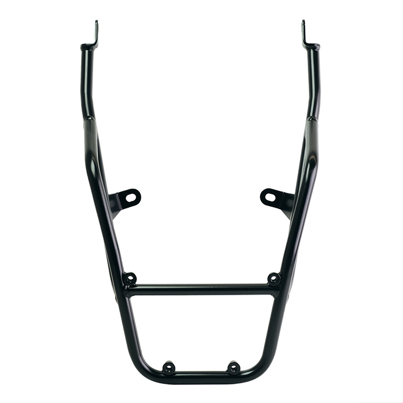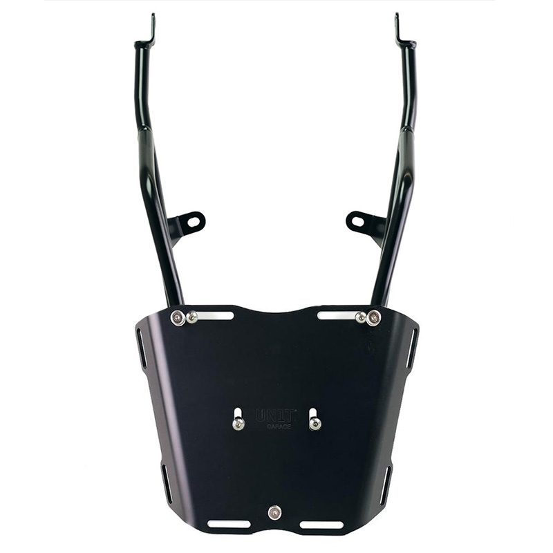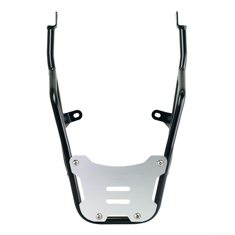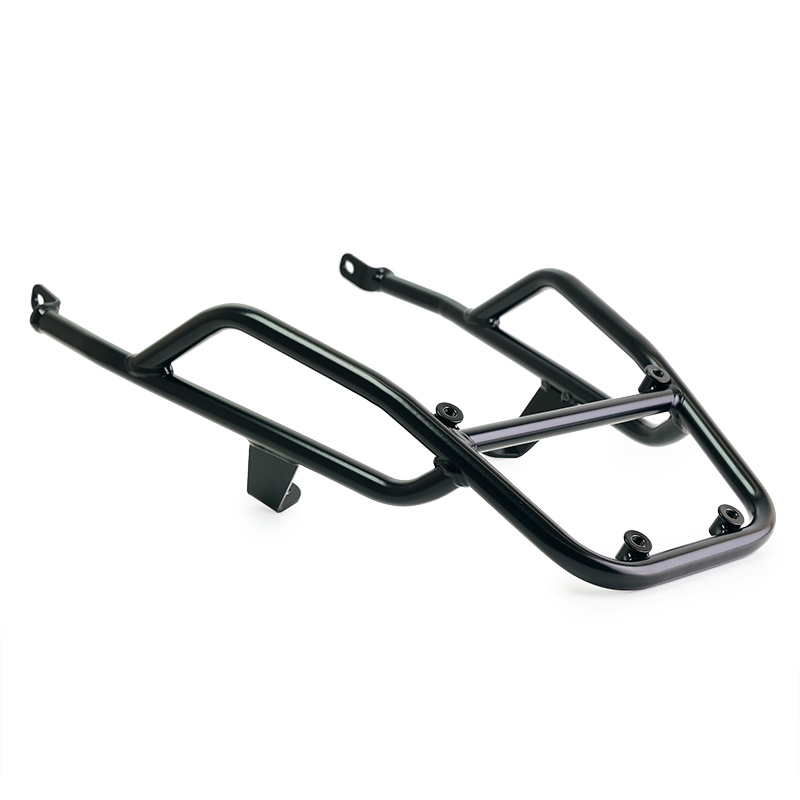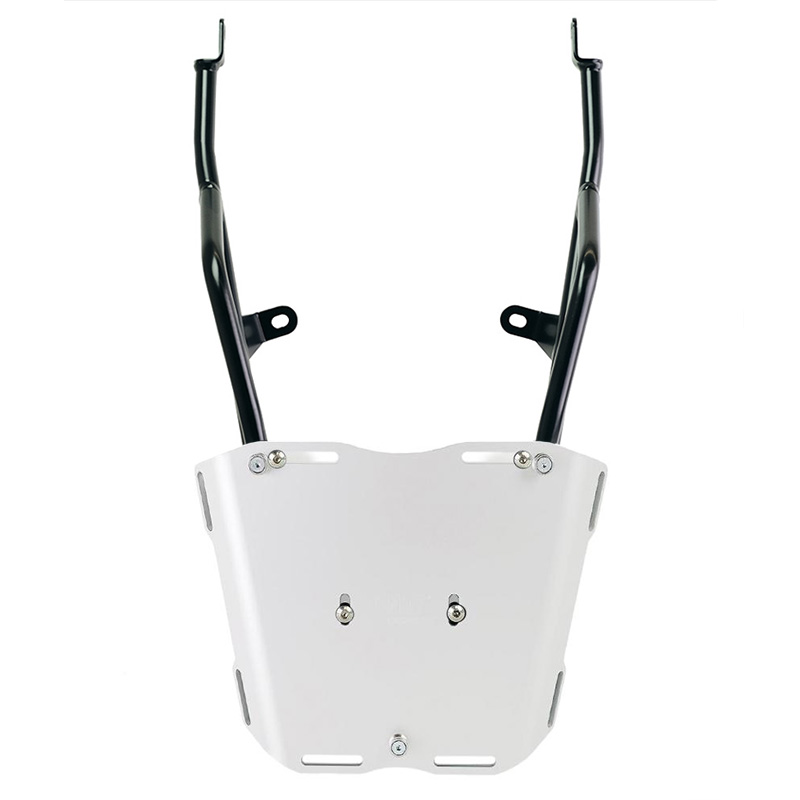 ロイヤルエンフィールド ベア650にハードトップケースや大きな荷物を積んで旅に出たいなら、このラックが最適です!リアセクションを完璧に仕上げ、快適なパッセンジャーハンドルを備えています。頑丈で実用的。4つの固定具を装着することで、アルミトップケース用のU108プレートとAL5プレートの両方を取り付けることができます。高耐久性のマットブラックエポキシパウダー仕上げもご用意しています。ソフトバッグを積載して荷物スペースを広く確保するのにも最適です。