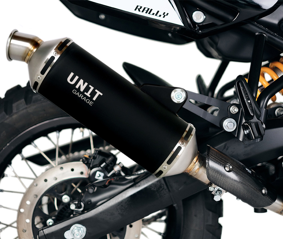 カーボンヒートシールド、ステンレススチールボディ、溶接部が見えるフィッティングで完璧なラリーレイドスタイルを実現。付属の取り付けキットを使用すると、バイクに手を加えることなく簡単に取り付けることができます。そのサウンドと配達も夢中になります。