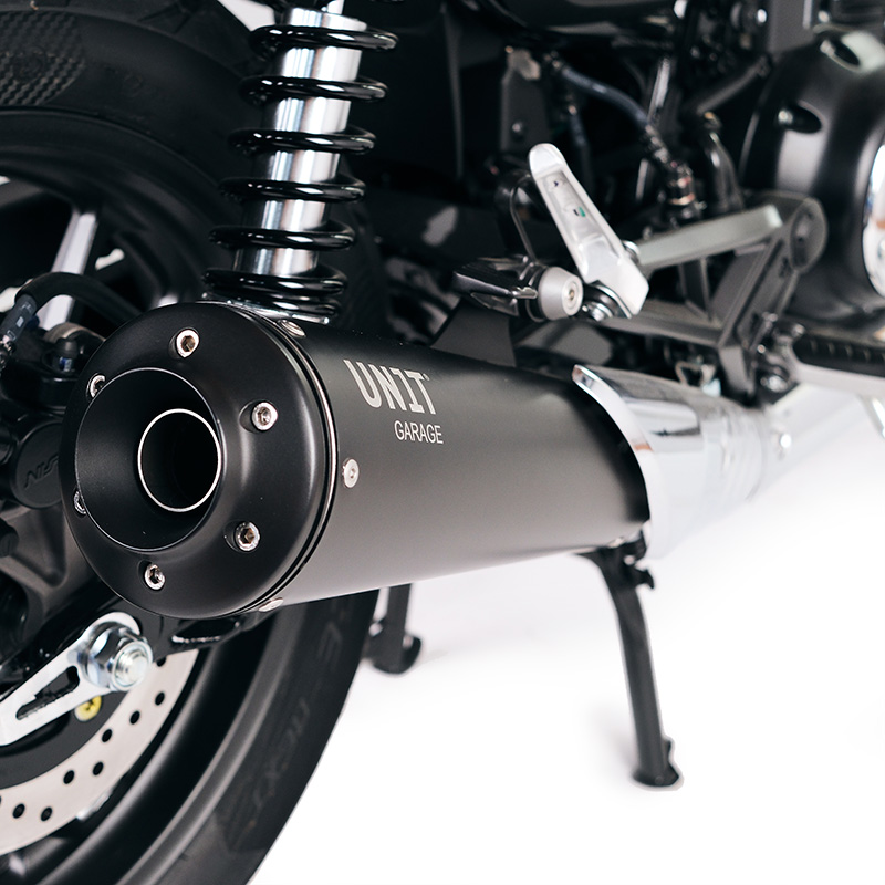 承認された特別なエキゾーストシステムを求めていました。マットブラック仕上げとCNC加工のエンドキャップを採用しています。